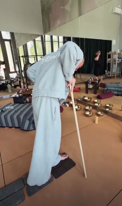 Он попытался преодолеть путь в три шага как можно быстрее. «Прикольные ощущения», — поделился актер.
