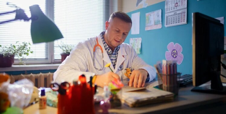 Толя — скромный педиатр, который ведет тихий образ жизни. Он живет с мамой, его не замечает руководство, на него не обращает внимание красотка-медсестра Диана. Единственное событие, произошедшее с главным героем, меняет весь его привычный уклад: однажды ночью он спасает раненого криминального авторитета. В благодарность доктор получает новый аппарат МРТ и обязанность помогать людям авторитета всегда. Теперь врач работает в две смены — утром с детьми, а ночами — с бандитами.