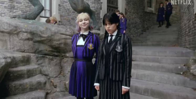 В коротком тизере Вещь (слуга семьи Аддамс в виде человеческой руки) разносит по личным гримеркам артистов сценарии. Последний лично в руки получает исполнительница главной роли — Дженна Ортега.