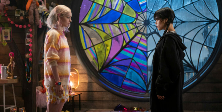 Ее друзья — вампиры, оборотни и другие существа, которые, несмотря на свои особенности, радуются жизни, влюбляются, дружат и между тем спасают друг друга. Самым мрачным персонажем стала Уэнсдэй, которая не приемлет объятий, искренних эмоций, любви и радости.