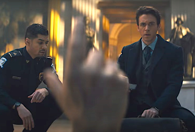 Ну то есть он очень крутой мужик в масонском обществе. Профессор должен был прочитать лекцию в Капитолии. Но вместо этого он снова бегает по городу в поисках утраченного символа, чтобы спасти похищенного друга.