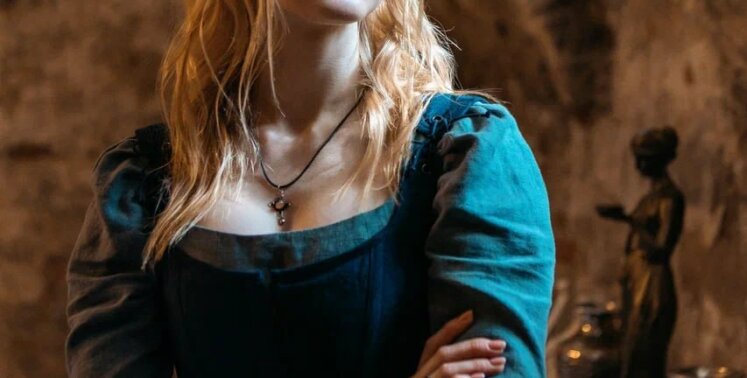 Экранной сестре Антона достался чуть более сдержанный образ, но Марии Лисовой все равно придется провести немало времени в кресле гримера: половину ее лица занимает шрам от ожога — ведь когда-то Мию брат спас от сжигания на костре.