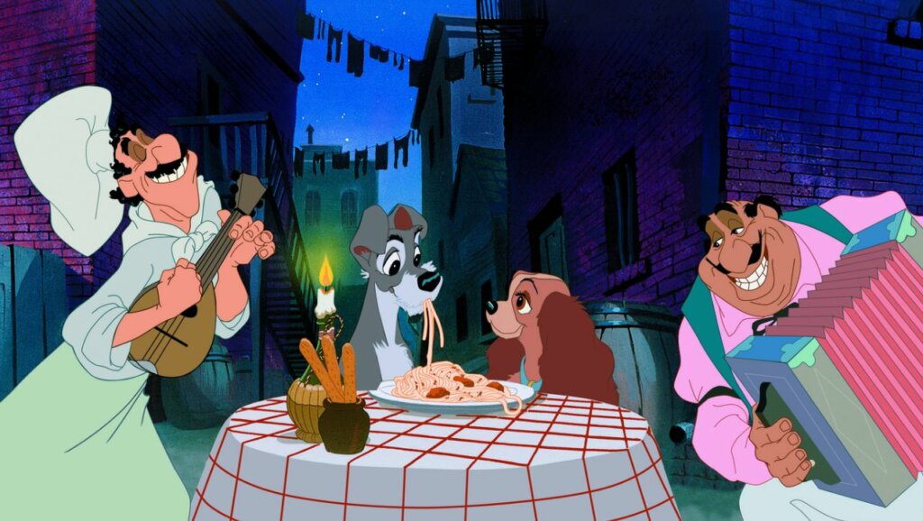 Породистая кокер-спаниель Леди, подаренная на Рождество Джиму Дир и его жене Дарлинг, растет в любви и заботе. Но после рождения ребенка хозяева уделяют питомцу всё меньше внимания, а в доме появляются капризные сиамские коты, из-за которых Леди оказывается на улице. Здесь она встречает Бродягу — свободолюбивого дворового пса, который показывает ей жизнь без ошейника и правил. Он открывает Леди притягательный опасный мир городских окраин, помогает выбираться из передряг и вместе с ней спасает уличных псов из отлова. Их совместные приключения перерастают в трогательную историю любви. Один из самых узнаваемых мультфильмов студии Дисней, вошедший в список «100 величайших любовных историй всех времен».