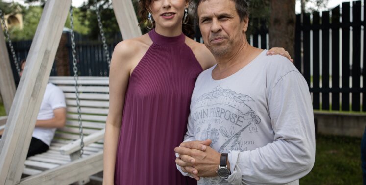 «Александр Робак — профессионал с большой буквы. И произошла забавная история, о которой, мне кажется, он не помнит. Дело в том, что мы уже уже встречались на съемочной площадке другого проекта, у нас было две небольших сцены. В тот раз я играла его дочь, поэтому мне сейчас очень забавно играть роль его девушки», — рассказывает Ангелина.