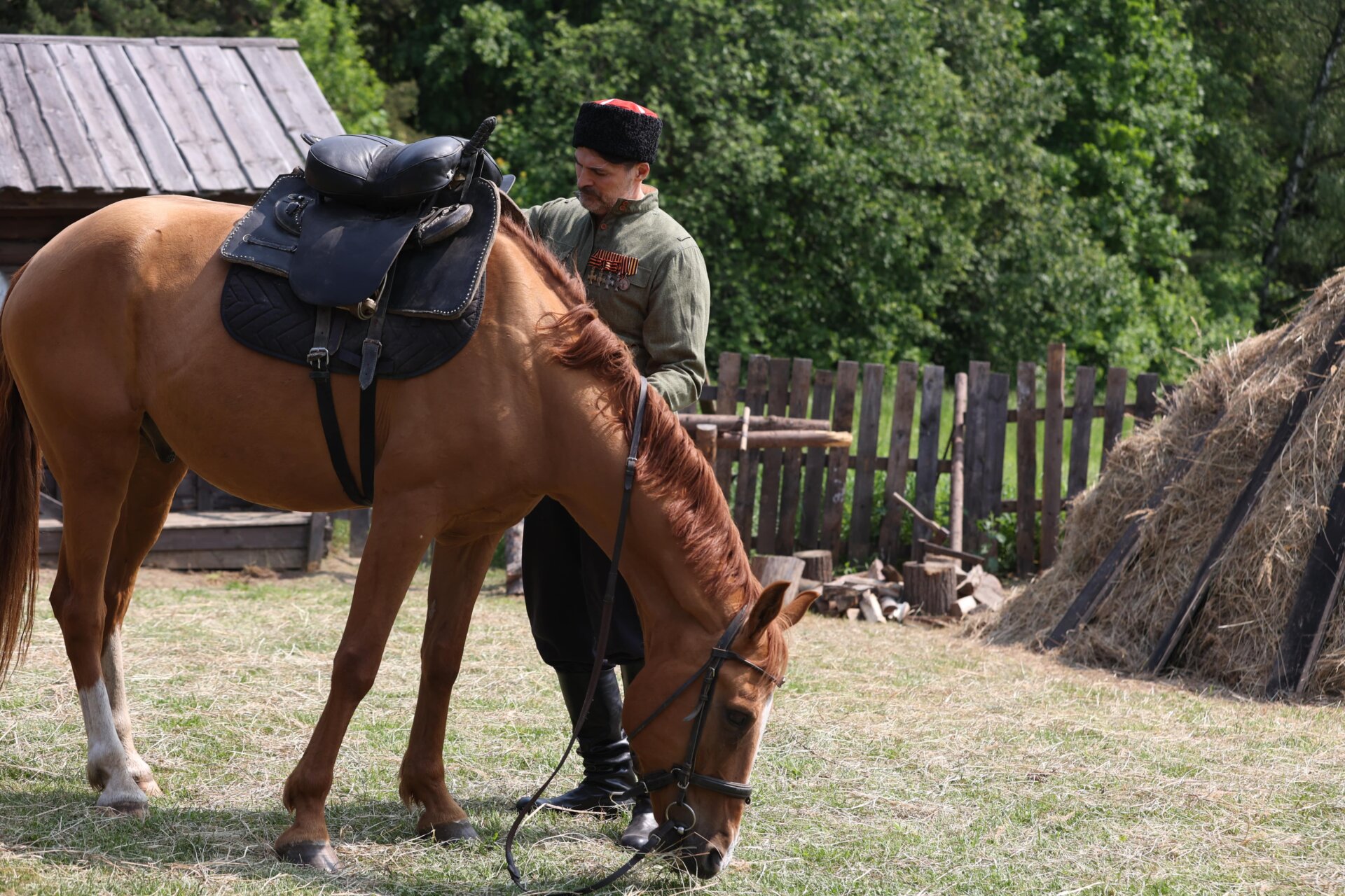 Мой герой – казак, сотник, прошедший всю Первую мировую. В Гражданскую повоевал за белых, потом попал в плен и вступил в Красную армию. Прошло время, сейчас он уже немолод, старые раны напоминают о себе. Но с приходом нового испытания для страны он опять рвется на фронт. Он чувствует свою личную ответственность. Понятие «Родина» для него не пустой звук. С давних времён казаки были опорой и защитой Отечеству, и отсидеться за печкой – не в его правилах. Полный Георгиевский кавалер знает, что с его серьёзным боевым опытом он будет незаменим. Особенно, когда видит совсем юных необстрелянных ребят, колонна за колонной идущих на передовую. Но когда-то он повоевал за «белых», а это проблема. С этого и начинается кино».