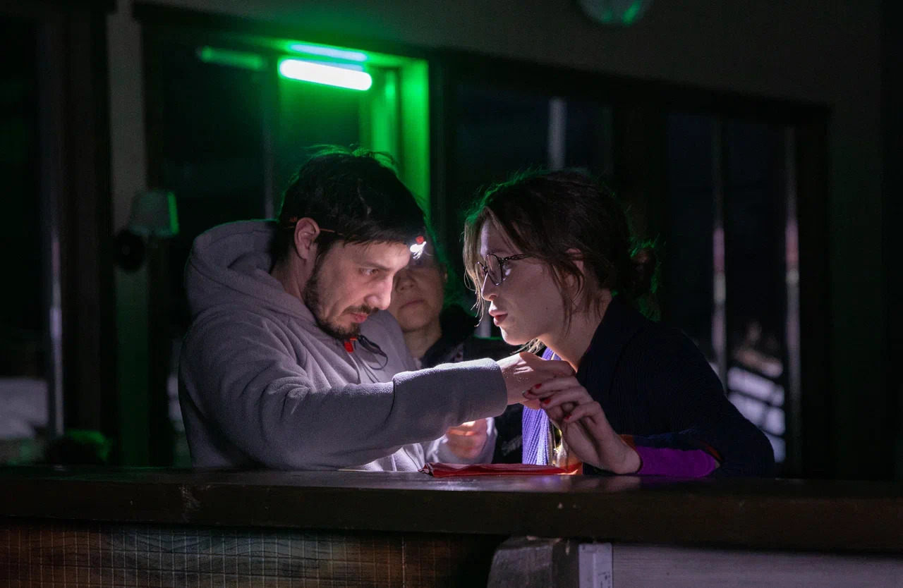 «Съемки проходили прекрасно! Огромная радость работать с такой командой. Для меня это было доброе и увлекательное путешествие, которое попало в самое сердце. Мне очень нравилось сниматься на улице: снег, метель, лед – как будто бы я снова ребенок и много гуляю зимой. Чистый воздух, мощь природы – кайф! А вот когда мы разделись и попали в полицейский участок…. Мне было немного тяжеловато: одна локация, в которой 24/7 происходит драма. Но мы и это пережили, сплотившись еще больше. Вообще это странное время для съемок, но именно они помогали не падать духом. Моя героиня получилась жесткой и трогательной. На сете я была окружена одними мужчинами, как, собственно, и моя героиня на ее работе. И среди них надо выживать. А еще быть сильной и терпеливой. Не хочу делать никаких выводов заранее, но мне очень нравится то, как придумывает и воплощает в жизнь свои идеи Адильхан. Про себя могу сказать точно – вложила всю душу и делала это на чистой творческой энергии, доверяя режиссеру и создавая вместе с ним» — Лена Тронина, актриса