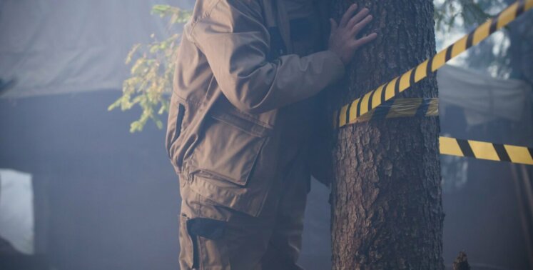 Специально для сериала «Здесь все свои» съемочная группа построила в глухих лесах землянки и лесопилку, предназначенную для эффектной сцены разрушительного пожара.