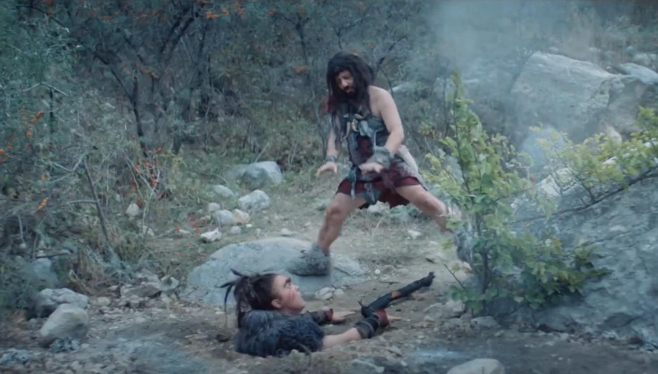 Другой берег реки — солнечный. На нем живет более развитое племя «Придурки», во главе которого стоит Вождиха — ее роль играет Светлана Ходченкова. Туда и сбегает соплеменник Вождя, которого мало того, что не убивают и не преследуют, так еще и дают кров и красивую женщину.