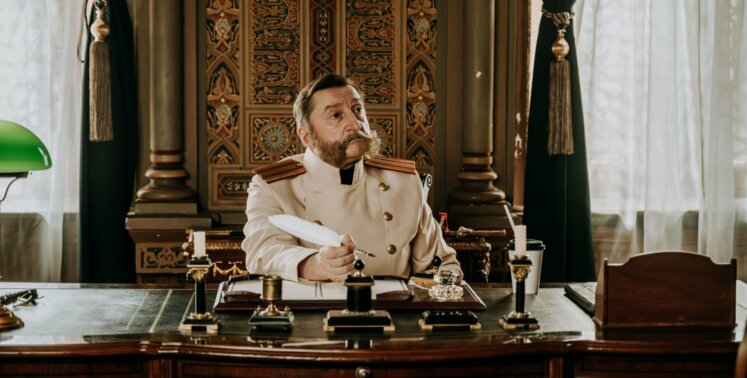 «Погружаться в эпоху, в которой ты не жил, – это приятно. Здесь очень много интересных нюансов – ношение костюмов, бороды, усов, приклеенных к тебе на древесный клей. А вообще, конечно, тут разговор идёт не о том, в какое время играть, а про что. Мне кажется, что наше современное российское кино потихонечку начинает разговаривать, про что оно снимает».