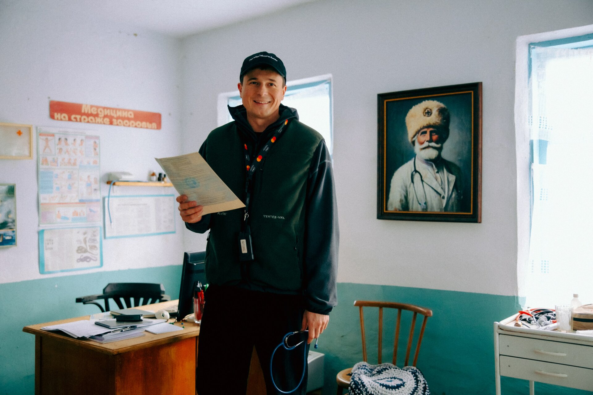 Он был вынужден скрываться от полиции из-за долгов и афер. Раньше он работал водителем Скорой помощи, а теперь вынужден переехать в село и устроиться на работу участковым доктором. Наивные деревенские жители склонны доверять свое здоровье. Но как типичный городской житель, он не приспособлен к быту деревни. Для него такая жизнь в новинку, и как люди могут выживать без простых городских благ — искренне не понимает. Но вернуться в город не может: там его ждет суд и тюрьма. Поэтому необходимо начинать жить по правилам деревни, к которым, к слову, он потом как-то прикипает.