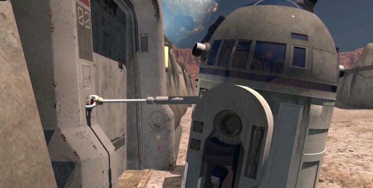 R2-D2 — дроид-астромеханик, который занимается ремонтом не только космических кораблей, но и любой другой техники. Он отличается своей смелостью и находчивостью, также ему нестрашна любая задача, так как герой уверен в своих силах и возможностях.