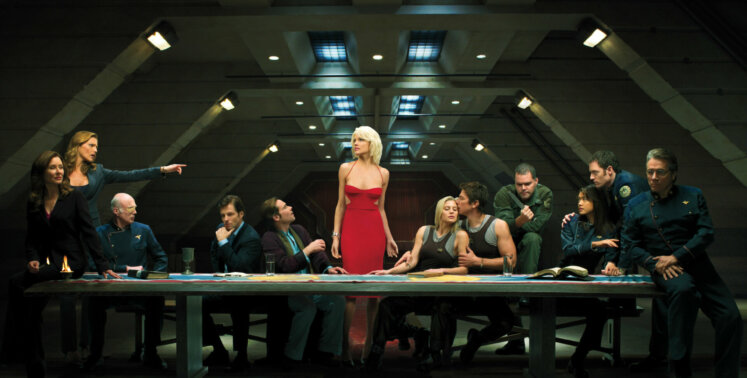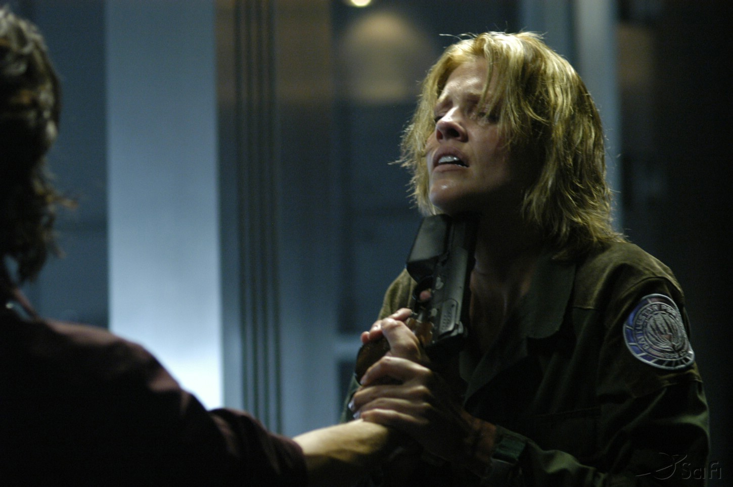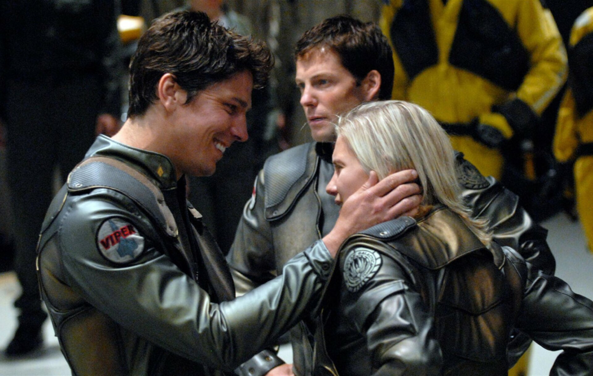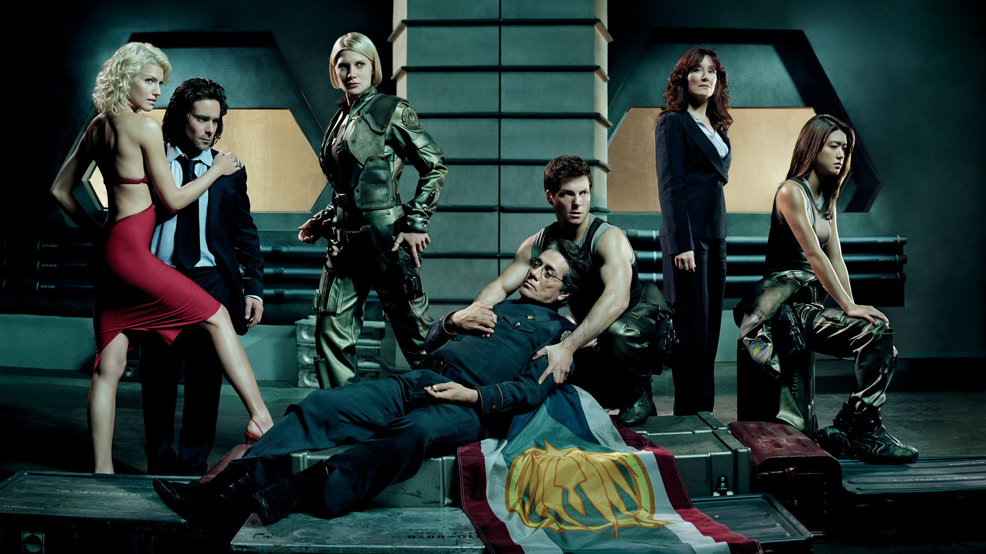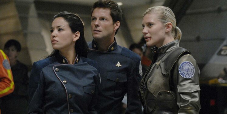 Выжили всего несколько тысяч человек, которые объединились в космический мини-флот. Во главе встал военный крейсер «Галактика».