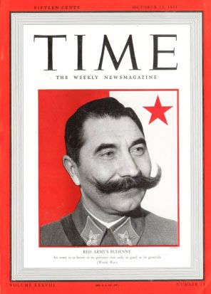 Обложка популярного общественно-политического журнала Time (США) за13 октября 1941года. Наобложке еженедельника— портрет маршалла Семена Будённого сзаголовком: «Армия храбра настолько, насколько храбры еерядовые, нохороша только настолько, насколько хороши еегенералы».
