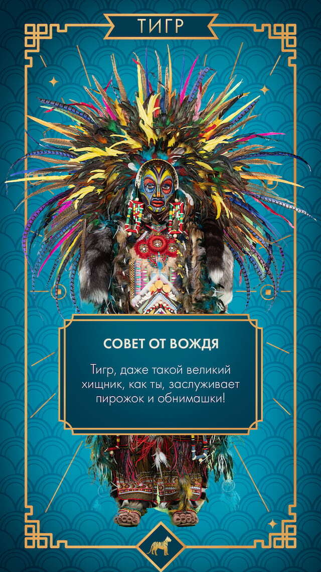 Смелый Тигр, ты привык нестись на всех парах — может, настало время остепениться и, наконец, научиться легкости и терпению? Если ты влюблён, то просто пригласи на медленный танец свою вторую половину. А если в поисках, то не хватайся когтями за добычу сразу и не прыгай вместе с ней в бассейн, лучше расслабься, брось томный взгляд и просто жди (хотя, таким красавчикам и ждать особо не приходится, ведь каждый раз, глядя на тебя, все думают: «Что за лев этот тигр!»).