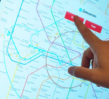 Проверено: сенсорная карта реагирует на прикосновения пальцев так же шустро, как и экран телефона. Построение маршрута занимает не больше минуты. Упрощает процесс то, что карта работает в онлайн-режиме, то есть показывает на схеме метрополитена точкой станцию, на которой или рядом с которой вы сейчас находитесь.