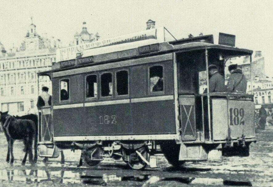 Современный трамвай начинался в столице, не поверите, с аттракциона. Именно так поначалу воспринимали горожане первую линию конки. Это был вагон на конной тяге, который курсировал по рельсам, — прообраз современного электрического трамвая. Маршрут временно проложили в честь празднования 200-летия со дня рождения Петра Первого. Желающие могли прокатиться от Иверских ворот до Тверской заставы.