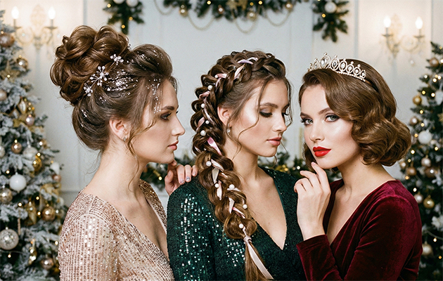При выборе укладки на Новый 2027 год ориентируйтесь на длину волос, выбор платья и форму лица.