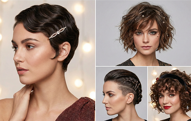 Благодаря своей игривости укороченные стрижки легко поддаются праздничному настроению. Покажем несколько интересных вариантов укладок, которые можно выбрать к празднику и создать свой идеальный образ.