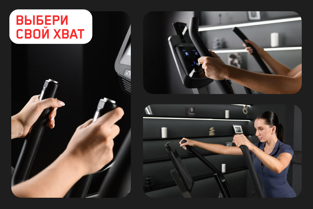 Педали с антискользящим покрытием разнесены на расстояние 18,5 см, а длина шага составляет 35 см — это дает естественную траекторию движения и комфорт во время занятий.