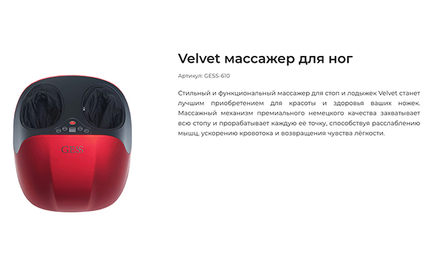 | Зона массажа | ноги; стопы; лодыжки |