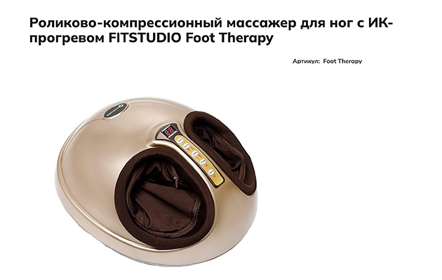 — Домашние массажеры для ног — отличное средство поддержания хорошего самочувствия не только нижних конечностей, но и всего организма в целом. Будучи фундаментом организма, стопы влияют на множество органов и систем. Использование массажера поможет расслабить мышцы, снять усталость, улучшить крово- и лимфоток, избавить от тяжести и отеков.