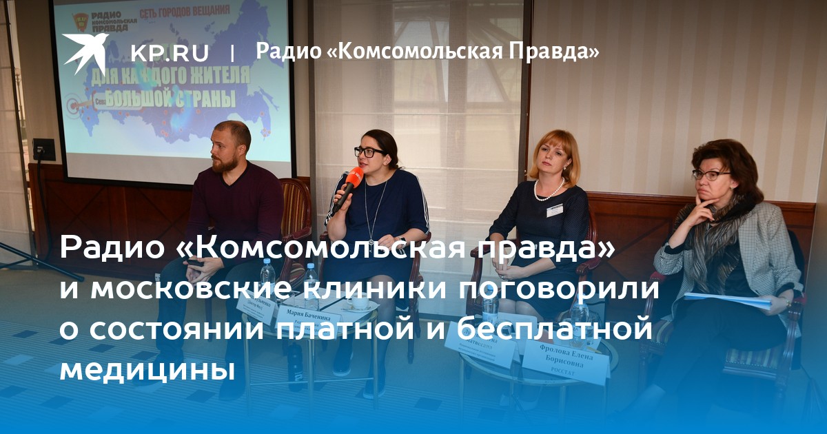 Радио «Комсомольская правда», приглашенные спикеры - эксперты в области медицины и московские медицинские клиники за круглым столом обсудили: в каком состоянии находится бесплатная медицина и можно ли считать платные клиники панацеей