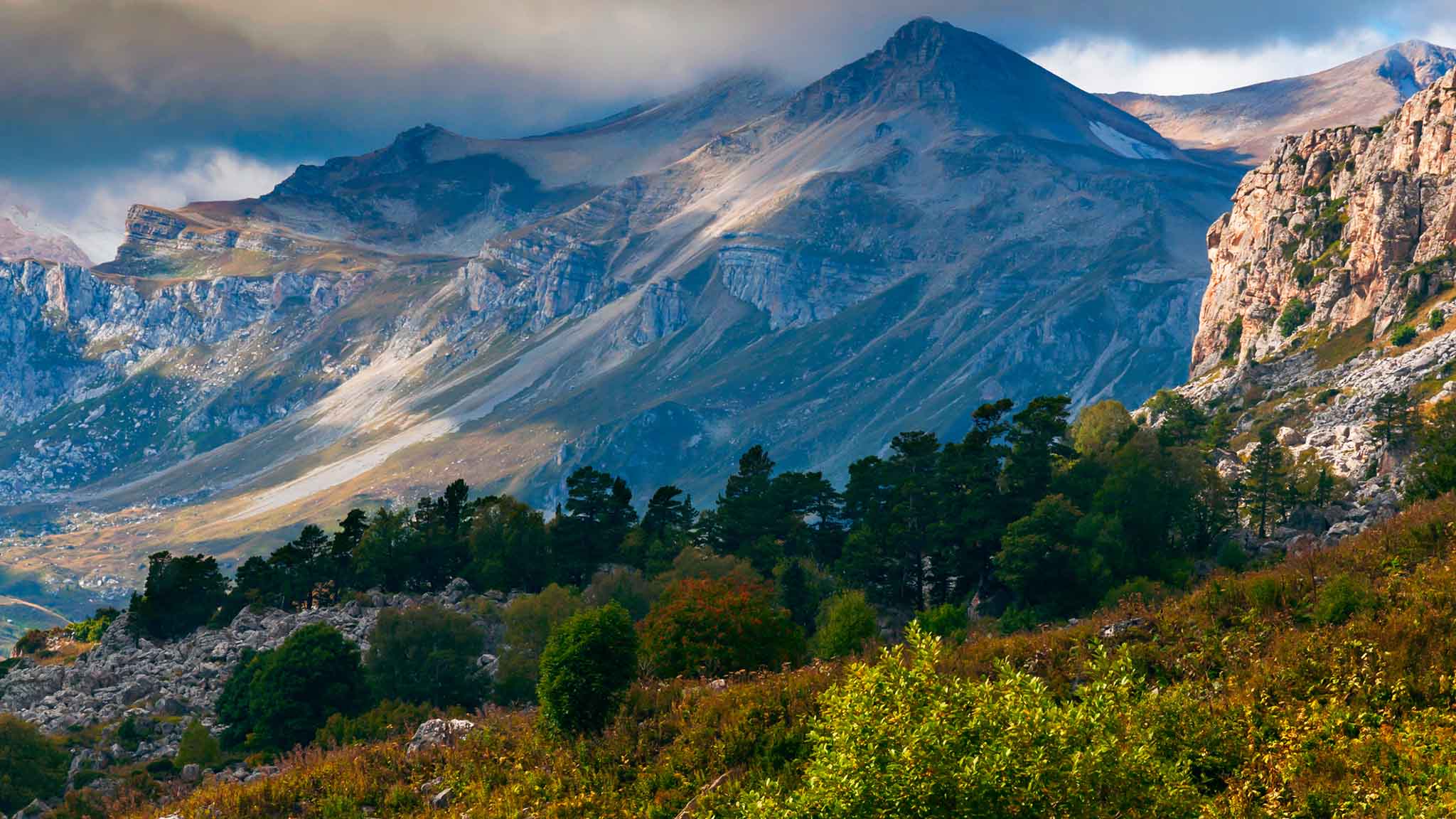 Лесная зона у подножия горы представлена сосной, пихтой, буком и березой. Под пологом леса встречаются папоротники, кислица обыкновенная, заросли ежевики, плющ.