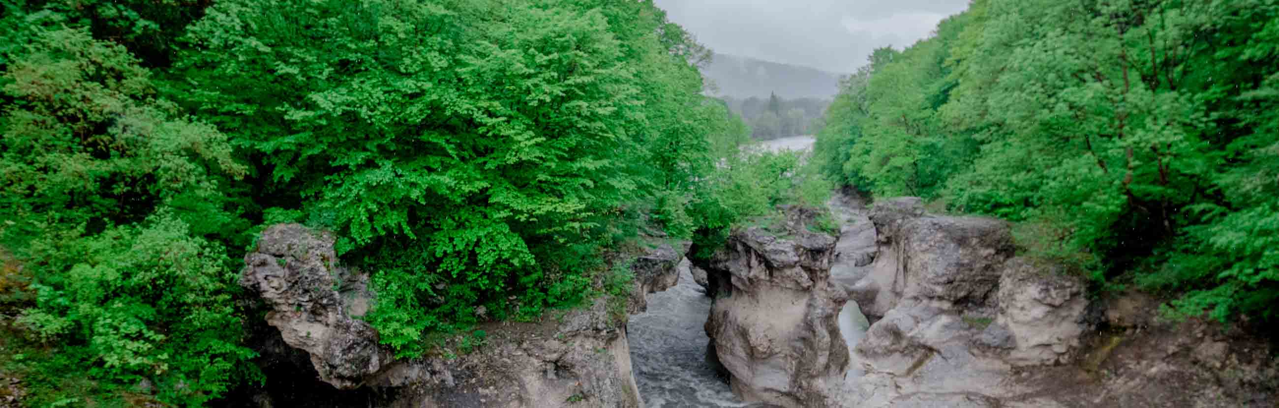 Настоящее чудо Адыгеи – часть Большого Хаджохского каньона, красивейшая Хаджохская теснина. Природная достопримечательность находится в юго-западной части поселка Каменномостский, в котором начинается большинство туристических маршрутов по Адыгее. Узкое ущелье в долине реки Белой протянулось на 400 метров, имеет ширину от 2 до 7 метров, по бокам возвышаются красивые 40-метровые скалы. Из-за бушующего потока воды в извилистой теснине всегда шумно, поэтому каньон имеет и другое название «Шум». Центральная часть ущелья оборудована удобными ступенями и перилами. Это платный туристический объект, однако посмотреть на природное чудо можно и без затрат. Бесплатные участки расположены в начале и конце ущелья. Туда по обоим берегам реки Белой спускаются натоптанные тропы.