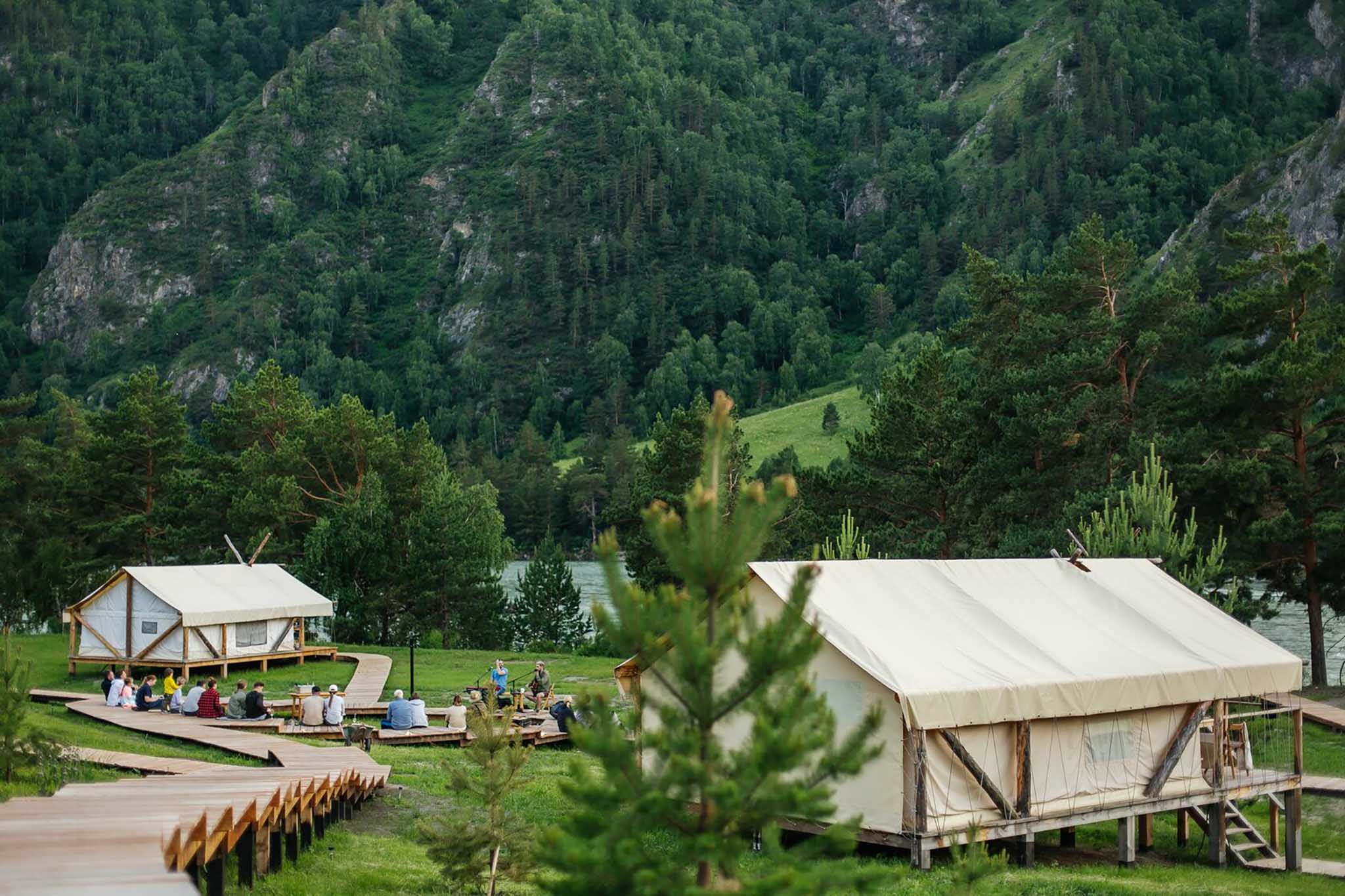 Глэмпинг расположен на берегу Катуни в Чемальском районе. В каждом номере установлена душевая кабина с горячей водой, работает кафе полевой кухни, но с ресторанной подачей. Сюда можно приехать с питомцем — дополнительная стоимость составит 3 тысячи рублей за химчистку номера. Среди развлечений — сплав по горной реке, экскурсии, прогулки на велосипедах.