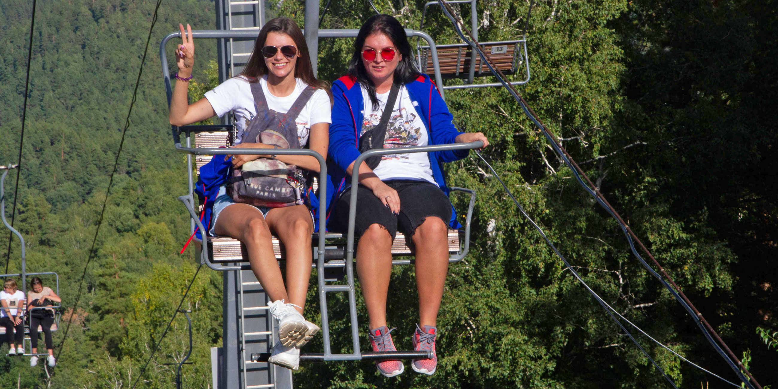 Перед тем как сказать горному краю до свидания, наша экспедиция решила взглянуть на республику с высоты птичьего полета. Наша команда отправилась на самую доступную вершину — Малая Синюха, которая у алтайцев считается священной. Она с давних пор являлась местом поклонения шаманов богам. На ее вершину ведет пешая тропа, по которой шаманы до сих пор поднимаются, чтобы исполнить обряды, но мы решили сэкономить время и выбрали более быстрый вариант — подъем по гондольной дороге, расположенной на территории Всесезонного курорта Манжерок, которая за считанные минуты с комфортом доставляет наверх.