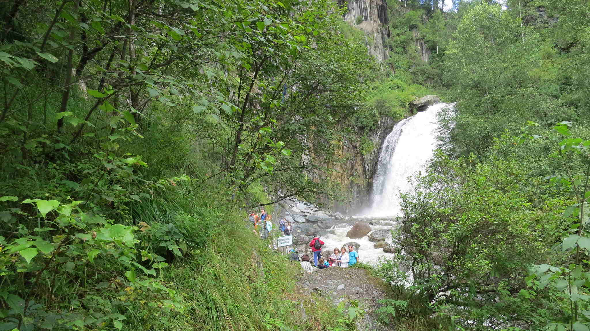 Это один из самых популярных водопадов Горного Алтая за счет месторасположения. Небольшой поток воды (общая высота каскада — всего 12 метров) в летнее время всегда притягивает туристов, так что летом здесь невозможно полюбоваться природой без групп туристов. В жару под его струями можно искупаться, но это для самых смелых, так как вода ледяная. Если вам важнее наслаждаться красотой природы, то запланируйте посещение водопада на осень, когда он особенно прекрасен.