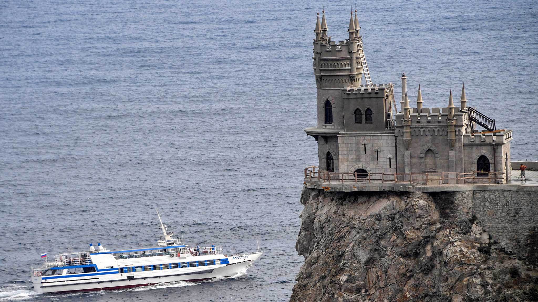 Визитная карточка Крыма замок «Ласточкино гнездо» находится совсем недалеко от Алупки, на мысе Ай-Тодор. Вопреки явно средневековому внешнему виду (каменные стены, зубчатые башни), построен он был сравнительно недавно — в начале ХХ века. И, оправдывая свое название, замок прилепился на самом краю высокой скалы над морем.