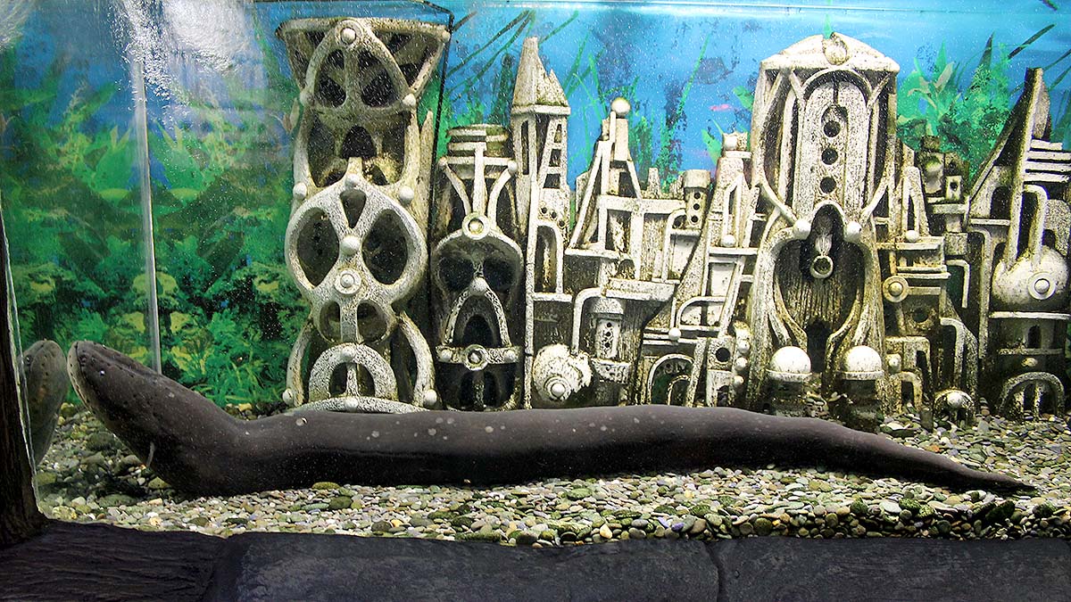 Алуштинский аквариум состоит из четырех залов. Первый похож на подводную пещеру с большим открытым бассейном в центре. Здесь живут забавные морские собачки, дракончики, морские коньки, морские коровы и скат-хвостокол. Во втором и третьем залах можно посмотреть на пресноводных рыб - обитателей рек и озер. Именно здесь вы увидите хищных пираний и самую большую в мире пресноводную рыбу арапаиму гигас, которая в длину достигает 9 метров. А в четвертом зале полюбуетесь на ярких и красочных жителей южных морей.