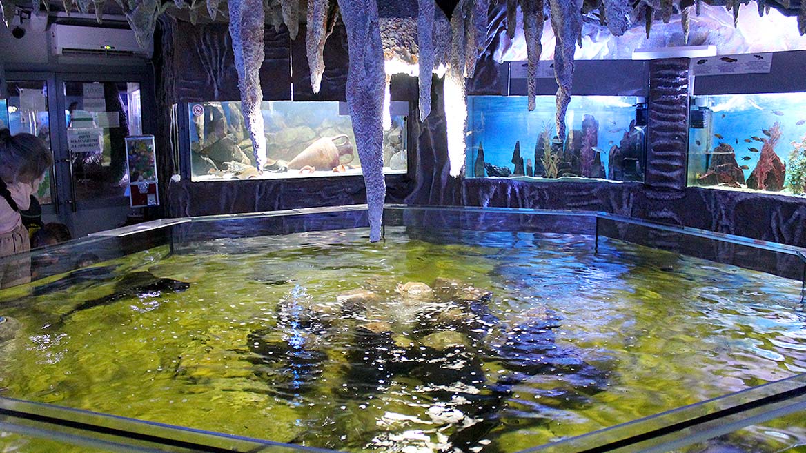 Считается, что в Алуштинском аквариуме находится самая большая в России коллекция рыб. Рассматривать обитателей вод и наблюдать за их поведением очень интересно. Кроме рыб и других морских животных, здесь можно посмотреть выставку кораллов и раковин.