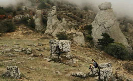 Странные фигуры не то людей, не то животных видно издалека — еще с дороги на подъезде к селу Лучистое вы заметите необычные каменные глыбы разных форм и размеров, будто нависающие над обрывом. Это Долина Привидений в Алуште. В солнечную погоду это место выглядит приветливым, а в туман или дождь — немного зловещим и мистическим. Кажется, что попал в затерянный мир.