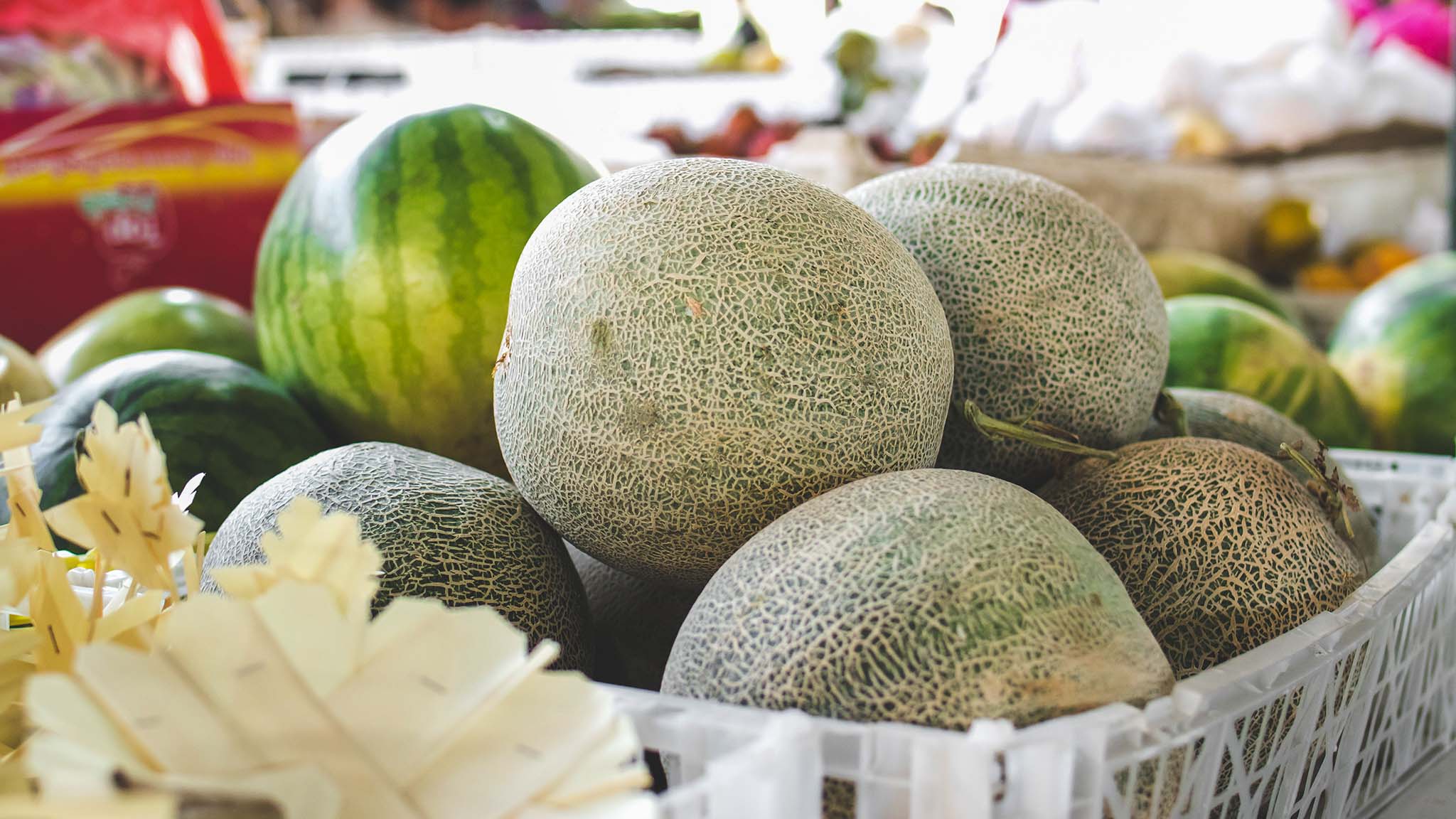 Главное фруктовое и овощное изобилие приходится на сентябрь и первую половину октября. Это время уборки многих фруктов, поэтому цены на них обычно к этому времени падают. Что же до арбузов, то их тут буквально горы. Торговцы по просьбе покупателя могут отрезать половину арбуза или, если тот совсем уж гигантский, четверть. Можно найти множество сортов дынь — от крупных вытянутых Торпедо до забавных Далматинов, белых в зеленую крапинку.