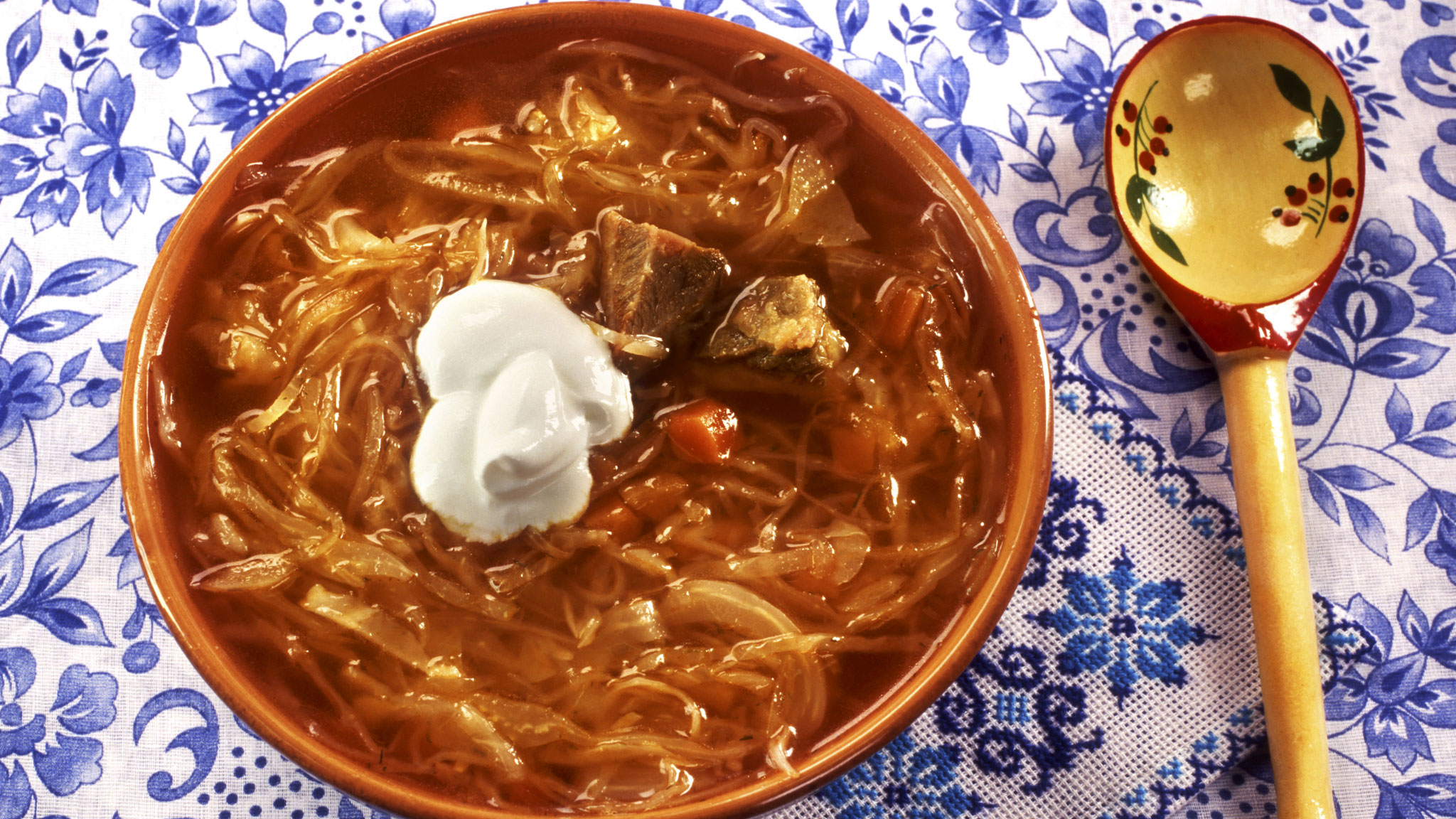 Ярко-оранжевый, словно южное солнце. Посыпанный свежей зеленью, кубанский борщ густой и наваристый, еще и выглядит аппетитно. Все дело в свекле: в Анапе берут не сахарную, а кормовую. Ее пассеруют с другими овощами, из-за чего они приобретают желтый цвет. Сама свекла несладкая, и потому придает борщу особый вкус.