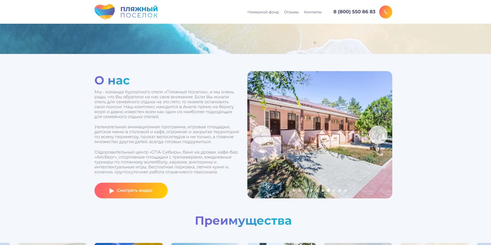 Отельный комплекс на берегу Черного моря продуман до мелочей. Здесь комфортно отдыхать с детьми, расслабляться с друзьями и проводить свадьбу. Гости отмечают стильное архитектурное решение корпусов и изысканность интерьеров. Вблизи расположены многочисленные кафе, аквапарк, городской парк с аттракционами, музей-заповедник «Горгиппия» и концертный зал «Летняя Эстрада».