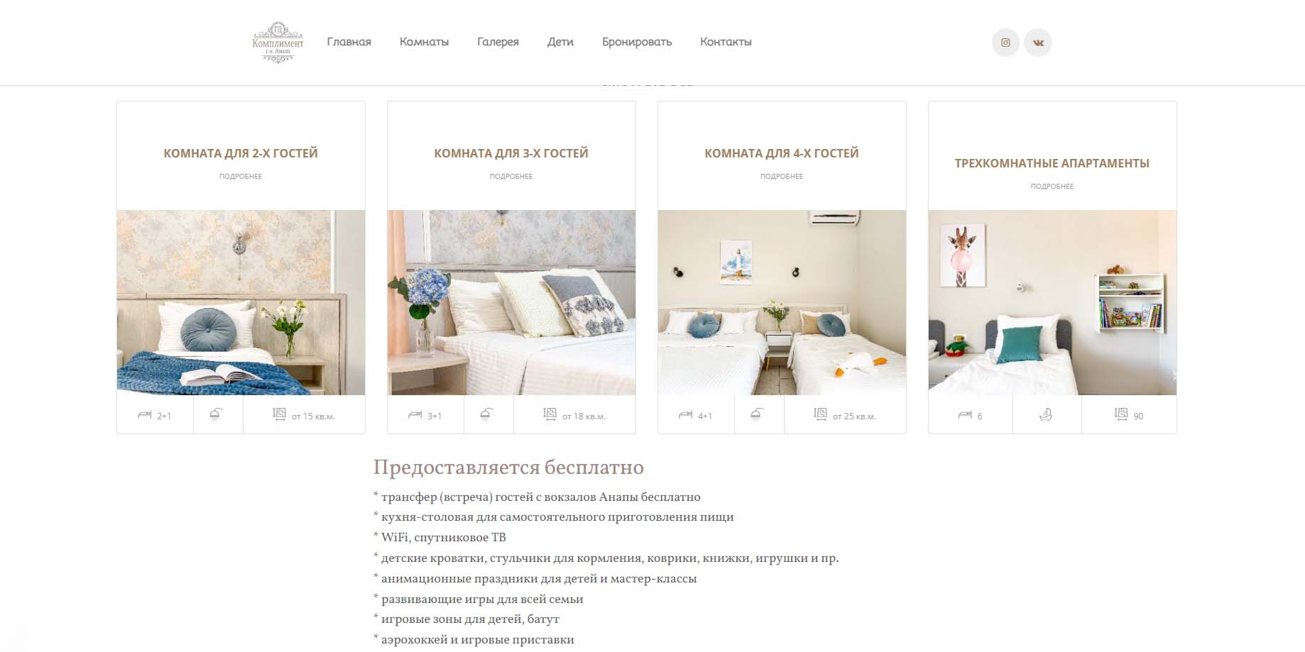Для семейного отдыха с детьми или поездки с друзьями подойдет частный отель в тихом зеленом районе Анапы. Окна всех номеров выходят во внутренний двор. Особым спросом пользуется двухкомнатная квартира на 4 места со спальней и кухней-гостиной. От курортной гостиницы 10 минут ходьбы до пляжа и всего пара минут — до Центрального рынка.