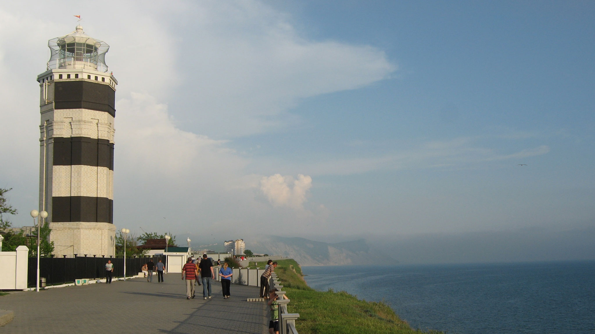 Набережная Анапы не была бы столь очаровательной, если не маяк. Он определенно добавляет ей атмосферности. Потому в теплое время года здесь много прогуливающихся. Для них открыли кафе, где, устроившись поуютнее с видом на морскую панораму, можно заказать какую-нибудь вкусность местной кухни.