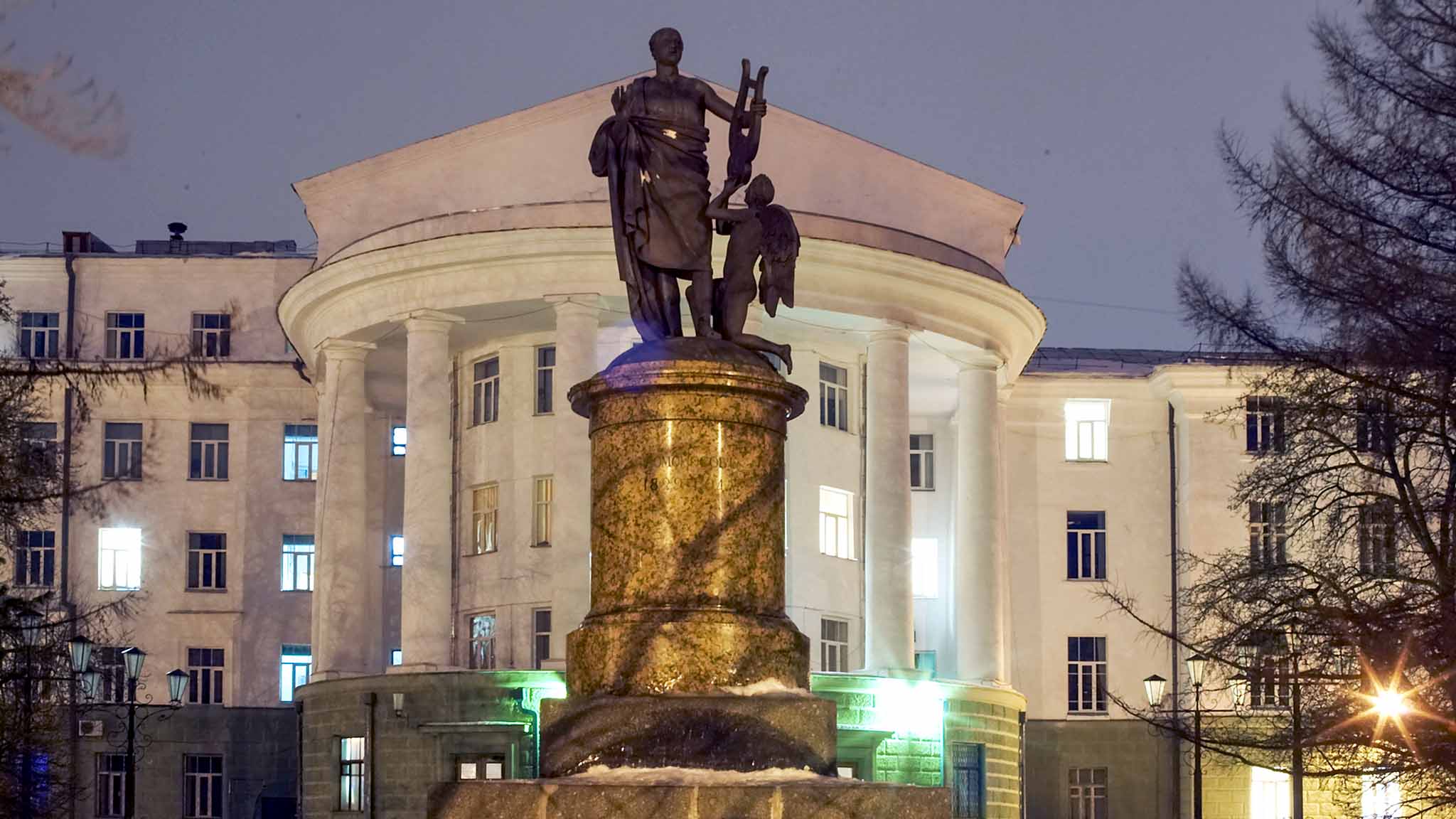 Великий ученый — родом из Архангельской губернии, и местные жители гордятся им. Монументальная фигура в римской тоге возвышается на основании из розового гранита. Памятник несколько раз менял прописку, а сейчас находится у Северного федерального университета, который носит имя Михаила Ломоносова.