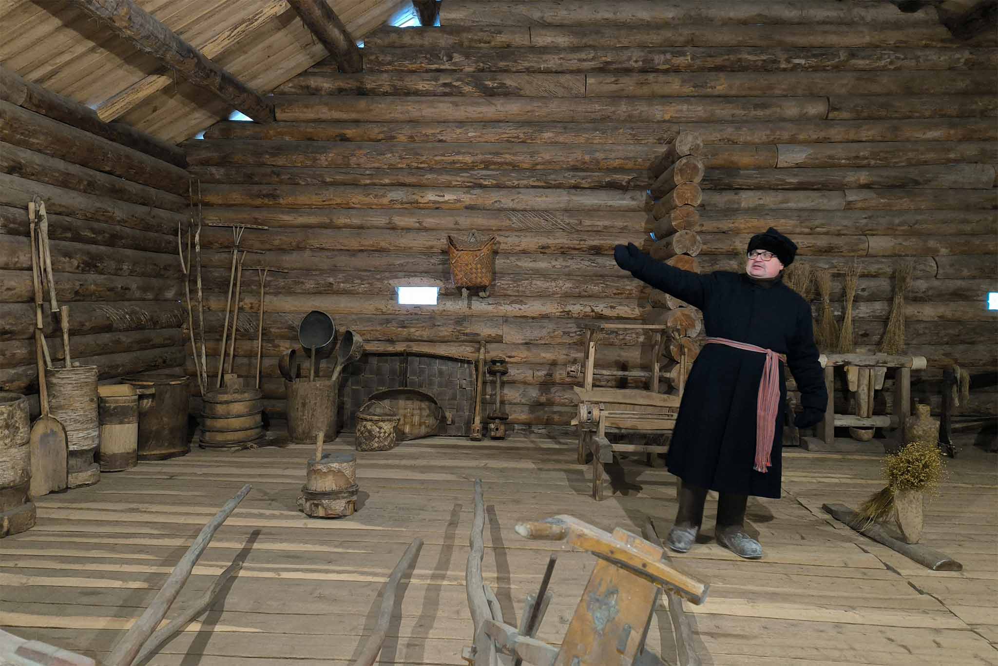Сделайте снимки в интерьере дома зажиточного крестьянина, например, Тропина. Он содержал трактир. В его доме восстановлен традиционный интерьер зимней крестьянской избы и сельского трактира.