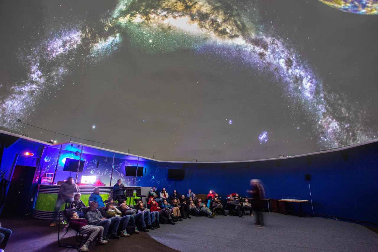 В Нижнем Архызе на территории академгородка, который сами ученые называют Буково, располагается планетарий. Он занимает второй этаж необычного здания с белым куполом. От пола до потолка примерно 14 метров. Окна здесь плотно зашторены, а по периметру зала расположены мягкие кресла для зрителей. На большом куполе планетария туристам показывают познавательные фильмы про космос. А еще проекторы выводят сюда объемные космические снимки.