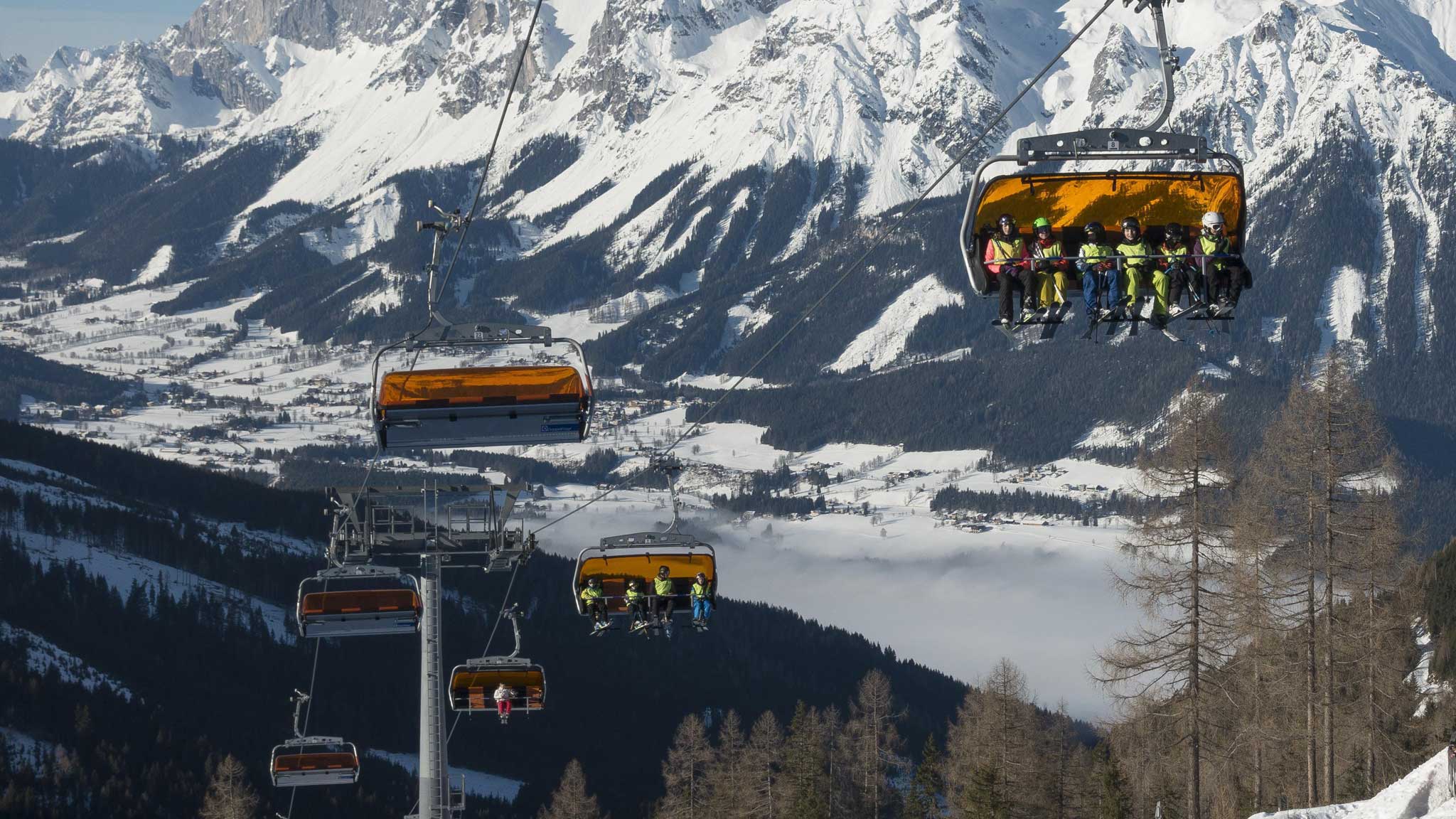 Он поднимает на самую верхнюю точку Северного склона — на 2840 метров. Но с этой высоты начинается единственная красная трасса, подходящая для опытных райдеров.