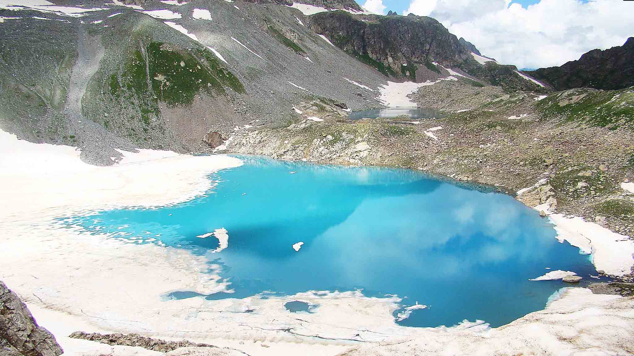 Весной на перевалах царство цветов и зелени, а погода уже приближается к летней. Изюминка и цель многих туристических маршрутов — чистейшие горные озера, например, Софийские. Их вода окрашена в лазурный цвет, за что это место прозвали Голубым ожерельем.