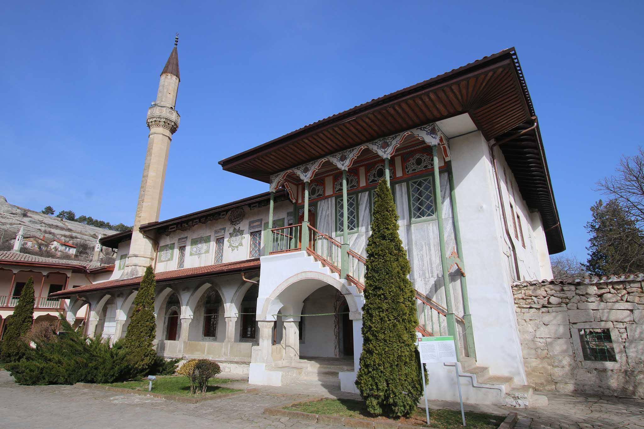 Визитная карточка Бахчисарая, резиденция крымских ханов, является настоящим украшением города. До наших дней дошел не весь дворец, но даже сейчас он производит неизгладимое впечатление. Сохранились тонкой работы фронтоны, украшенные затейливыми орнаментами и позолоченной арабской вязью, зал дивана (заседаний), беседки, дворцовая мечеть, помещения гарема, библиотека, а также кладбище, где покоятся почти все крымские ханы, и два дюрбе — мавзолея. А главным достоянием Ханского дворца является воспетый Пушкиным Фонтан Слез, в верхней чаше которого традиционно стоят две розы: белая и алая.