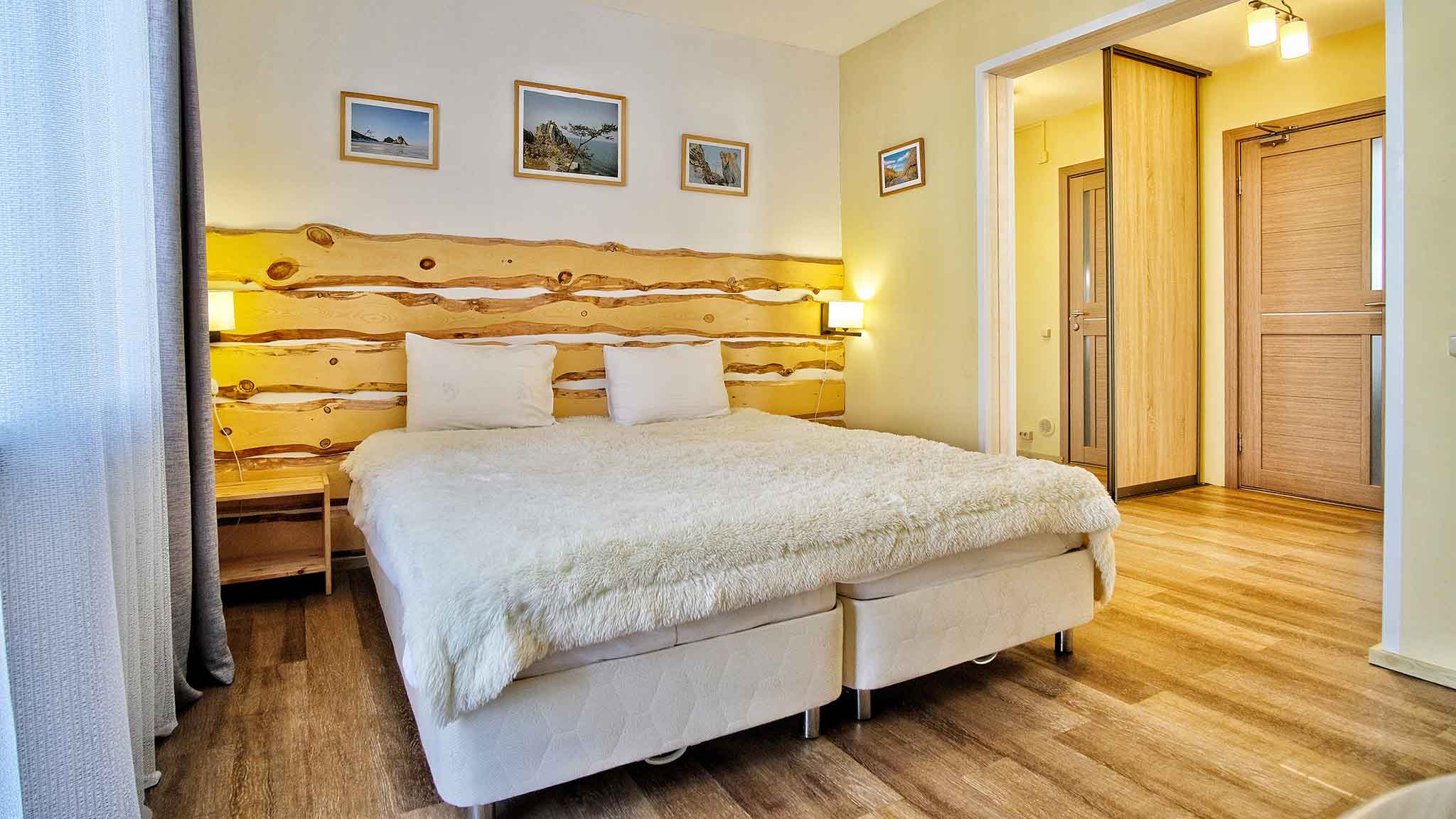 На выбор гостей — номера «стандарт» или «комфорт», а также VIP-коттеджи с дизайнерским ремонтом и качественной мебелью. После долгих прогулок у Байкала, до которого идти всего несколько минут пешком, можно расслабиться в современной сауне, а после искупаться в бассейне. Для мероприятий и торжеств предоставляются банкетный и конференц-зал.