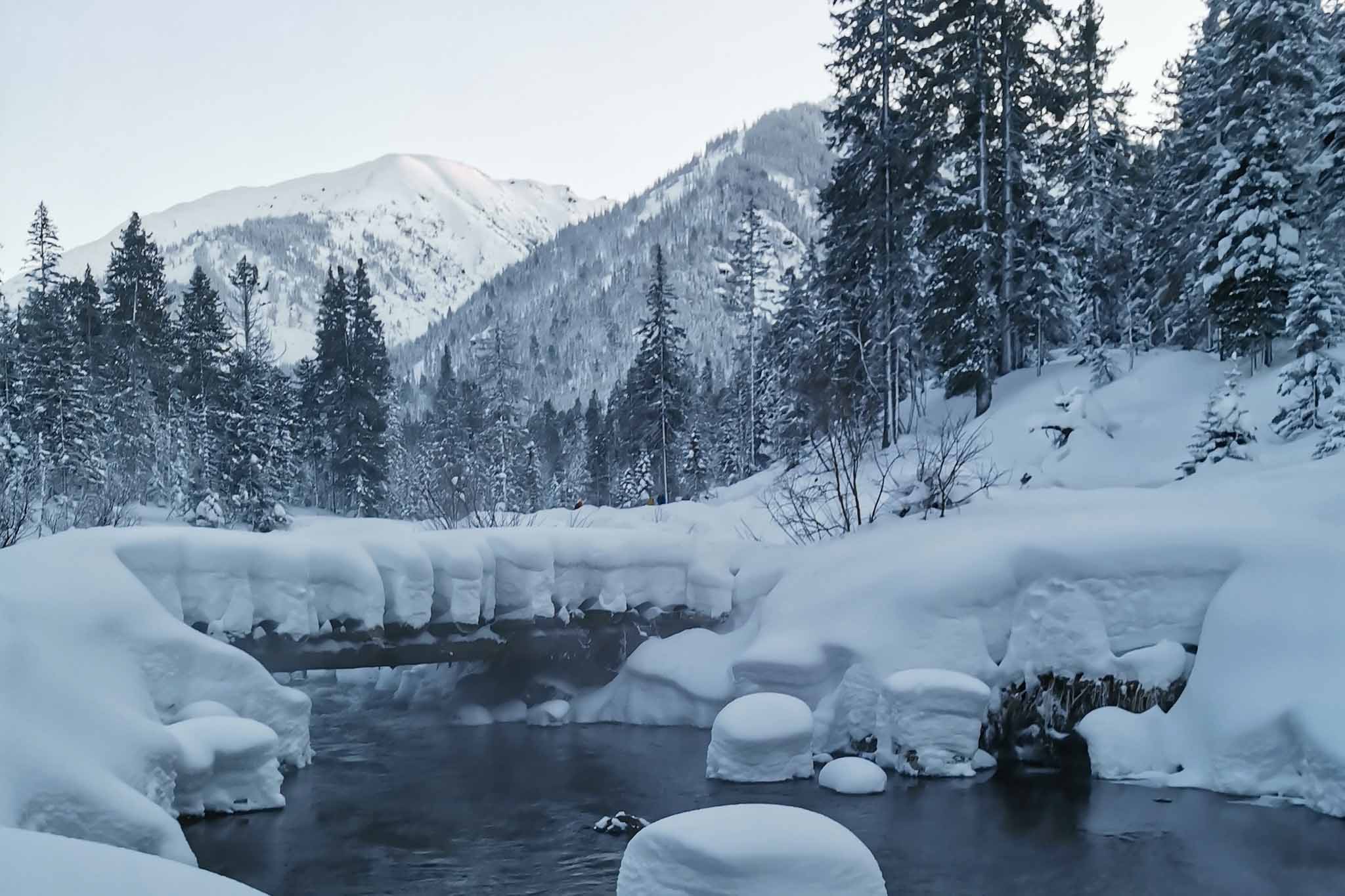 Мамай зимой — это метровые сугробы, ветки елей в снегу, белые «шапки» на камнях в реке, жаркая банька с купанием в ледяной речке и катания с вершин горы. Фрирайдеры могут найти на Мамае крутые кулуары, широкие плоские поля, пологие выкаты по долине и циркам.