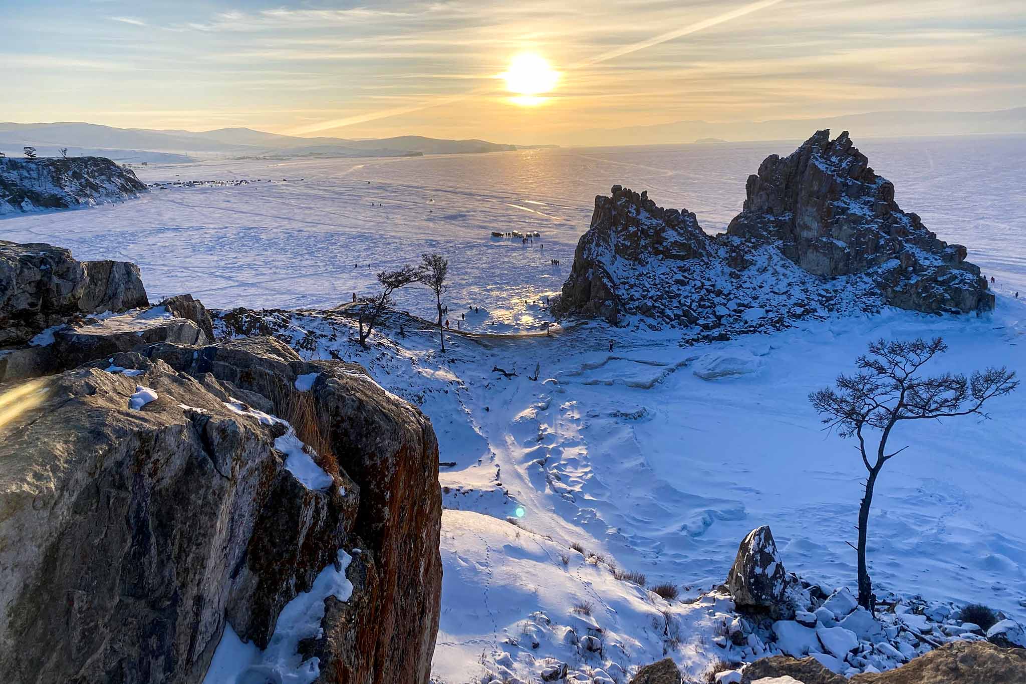 Или отправляйтесь на хивусе (катер на воздушной подушке) от Малого моря на остров Ольхон, который славится мысом Бурхан, или скалой Шаманкой. Живописнейшее место, окутанное тайнами и легендами, одна из девяти святынь Азии. Там неподалеку можно видеть красивые скалы, увешанные ледяными сосульками.
