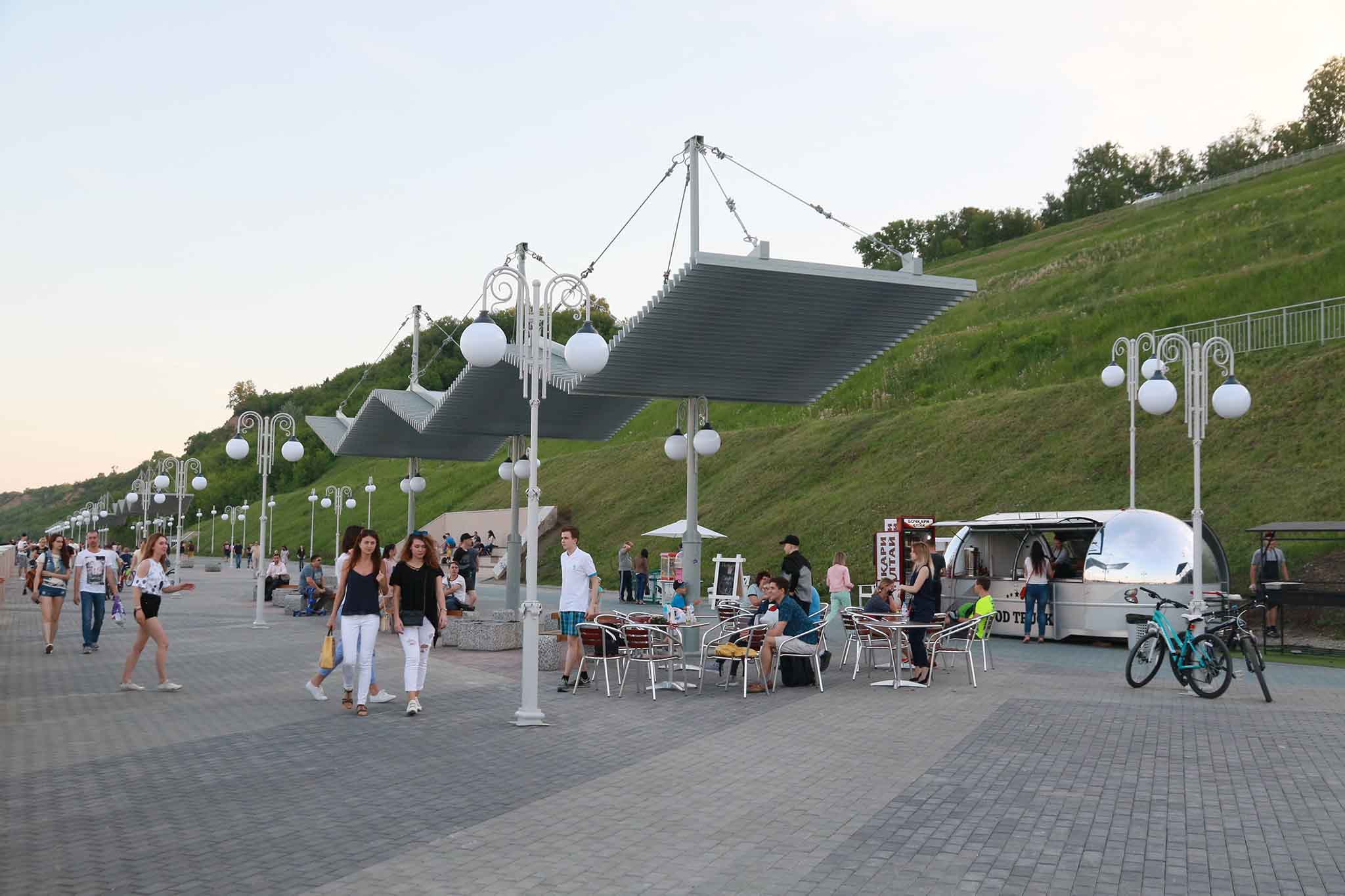 Летом здесь играют уличные музыканты, проходят концерты и танцевальные мероприятия. В основном сюда приходят погулять в теплое время года: с апреля по октябрь. Впрочем, если потеплее одеться, здесь будет комфортно и зимой.